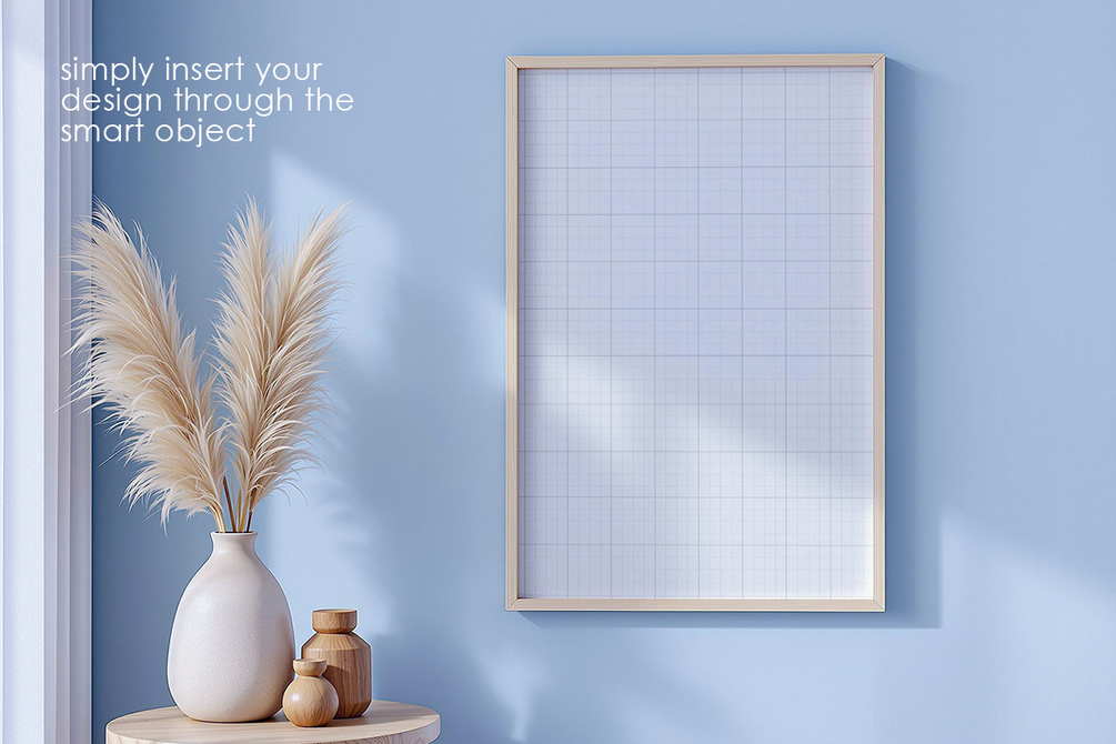 This minimalist digital file is your essential tool for showcasing artwork and printables in your shop, ensuring they look gallery-ready instantly. It is suitable for a vertical ratio of 4x5. This mockup template features an interior leaning frame with a poster that captures detail in a realistic setting.
