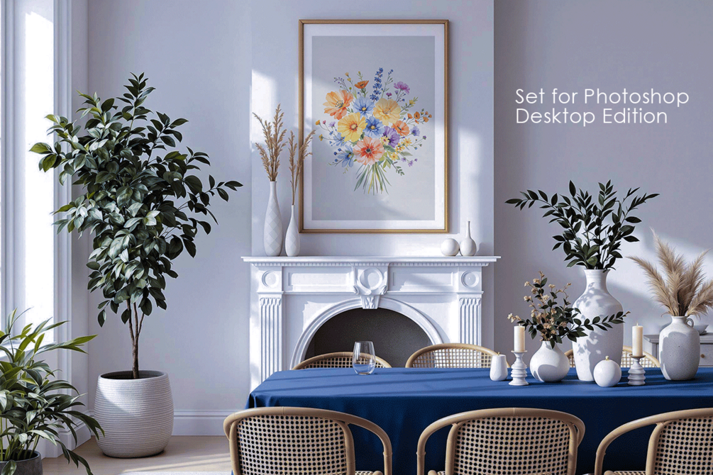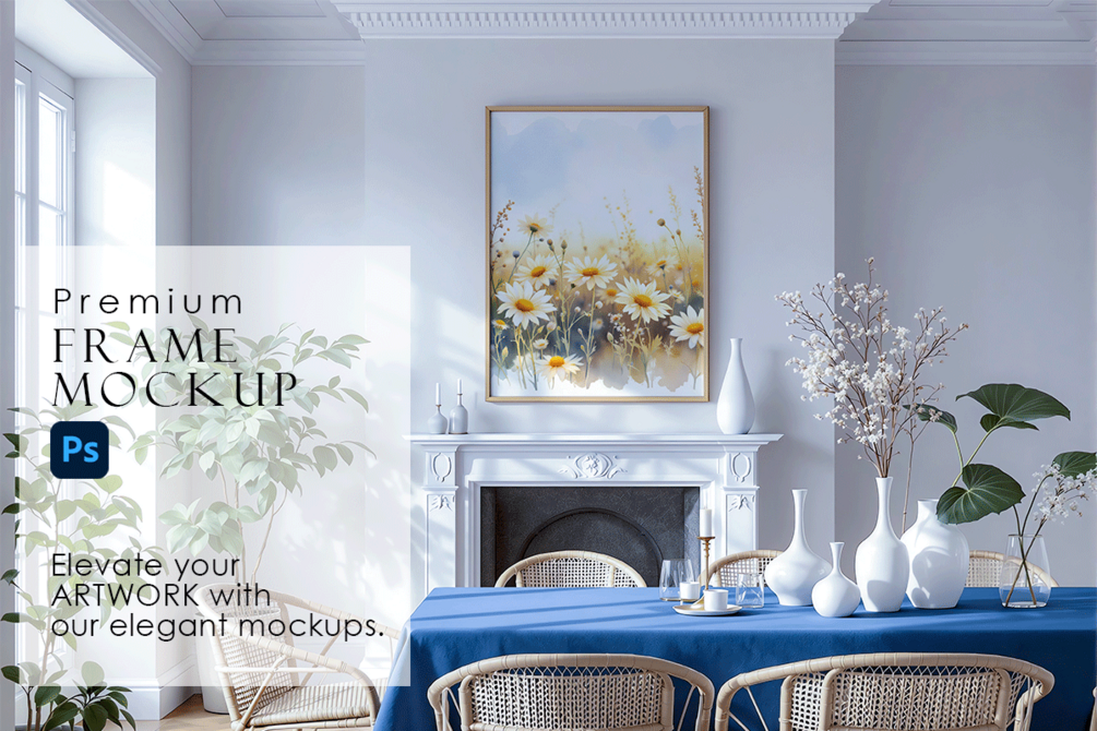 Modern Farmhouse Dining Room Frame Mockup PSD